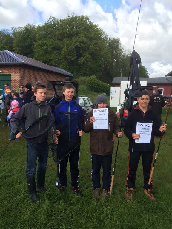 Nach einem sehr schönen und gemütlichen ersten Angeltag mussten wir den zweiten Tag mit Regen und starkem Wind kämpfen. Aber letztendlich hat sich die Mühe gelohnt. So konnten unsere sechs Jugendlichen als Mannschaft mit großem Abstand das schwerste Durchschnittsgewicht zur Waage bringen. In der Einzelwertung erzielte Moritz Linke mit 4 Hechten den 2. Platz, dicht gefolgt von Benni und Lupi Schröder mit jeweils einem großen Hecht auf den Plätzen 4 und 5.
